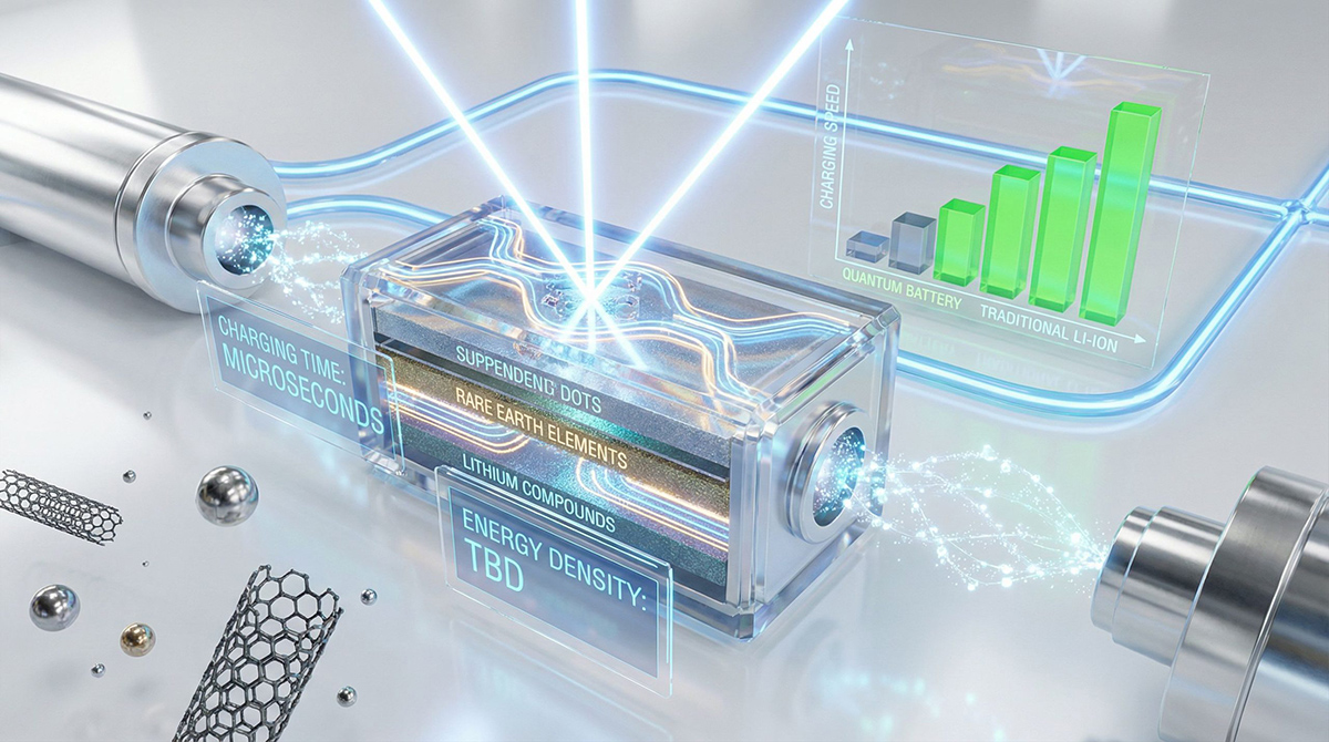 Với pin lithium-ion thông thường, kích thước và thời gian sạc tỷ lệ thuận với nhau, lý do đơn giản là pin điện thoại mất khoảng 30 phút đến một tiếng để đầy, còn pin xe điện thường cần cả đêm. Pin lượng tử hoạt động theo chiều ngược lại hoàn toàn, và đây chính là đặc tính làm giới khoa học năng lượng phải chú ý.