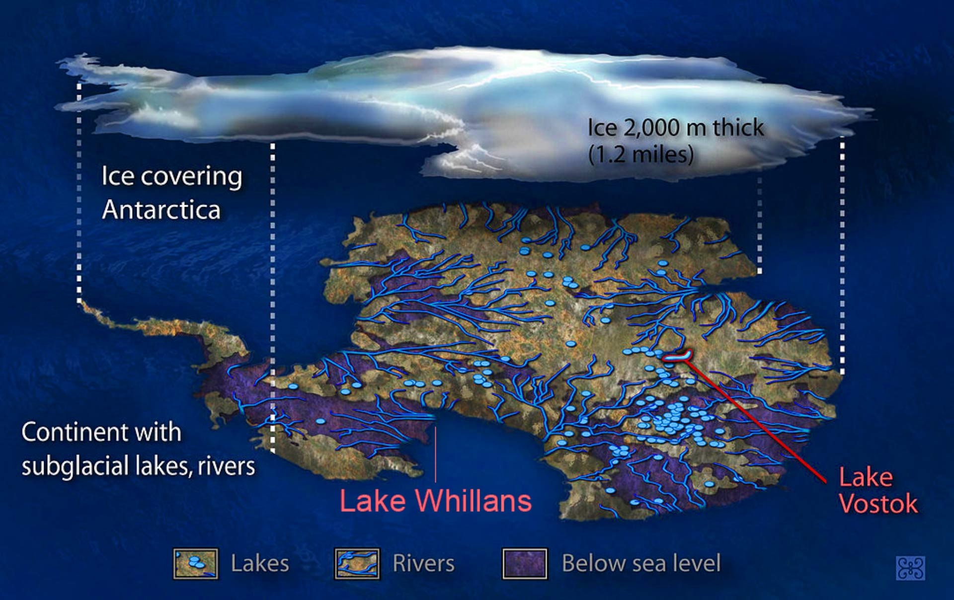 Hình dáng thực sự của Nam Cực là quần đảo đứt gãy kết dính bởi băng, hoàn toàn khác với hình ảnh khối lục địa thống nhất trên bản đồ.