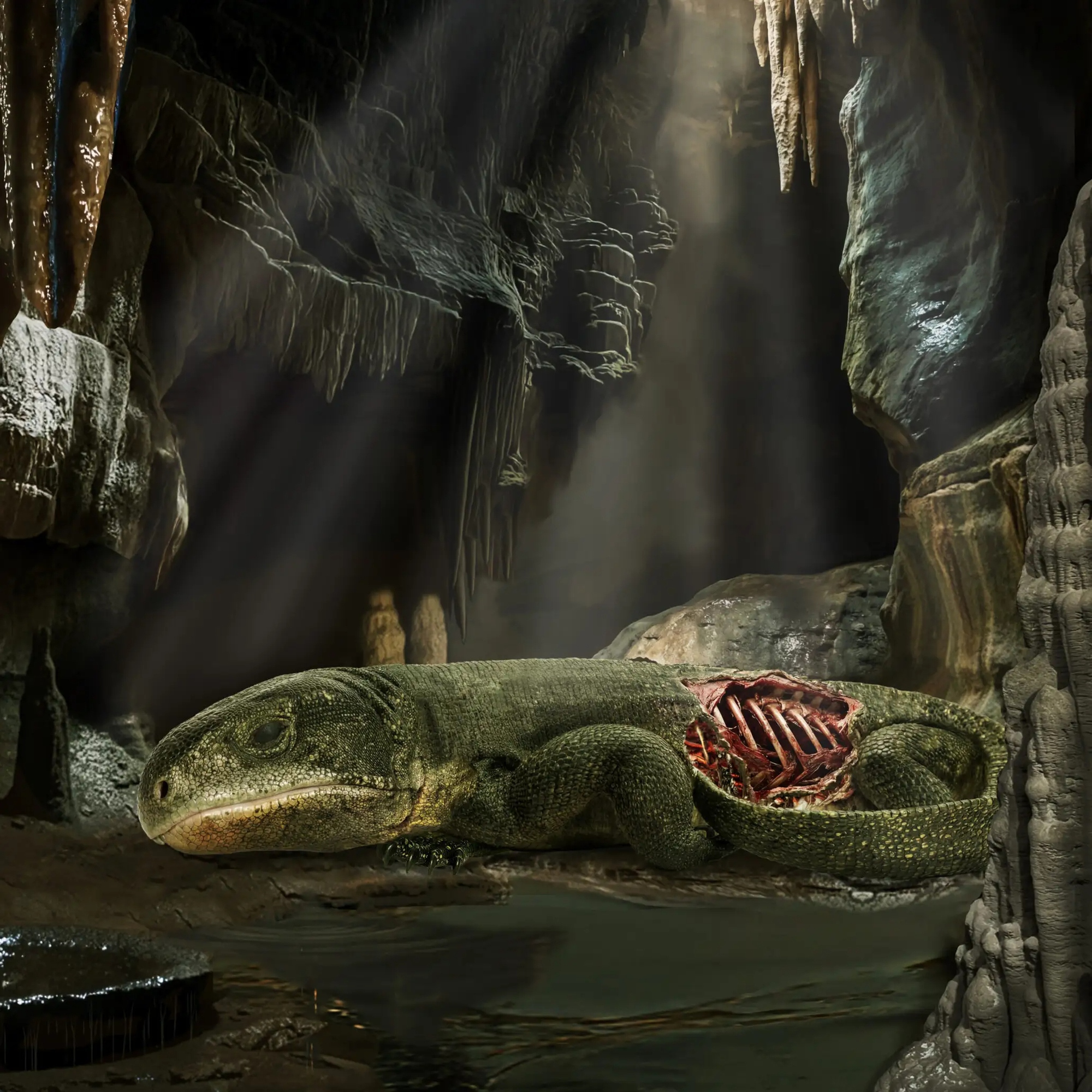 Theo thông tin từ nhóm nghiên cứu, sinh vật này có tên khoa học là Captorhinus aguti. Con vật đã kết thúc sinh mệnh của mình trong một hang động nằm ở khu vực núi Richards, bang Oklahoma, nước Mỹ vào khoảng thời gian 289 triệu năm trước, tức là thuộc giai đoạn đầu của kỷ Permi.